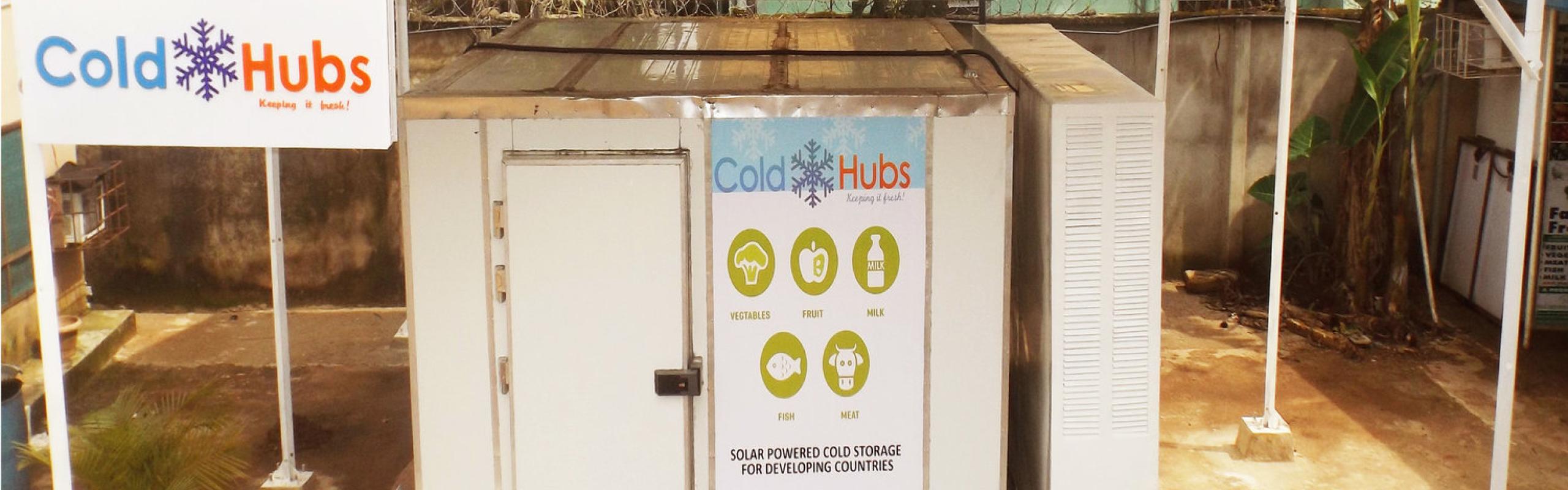 ColdHubs are walk-in, solar-powered cold stations that provide uninterrupted storage and protection for produce, installed in farms and marketplaces where there is a need for refrigeration. These units extend the shelf life of fresh produce from 2 to 21 days, while also providing employment to women—two per cold hub—who manage their operations.